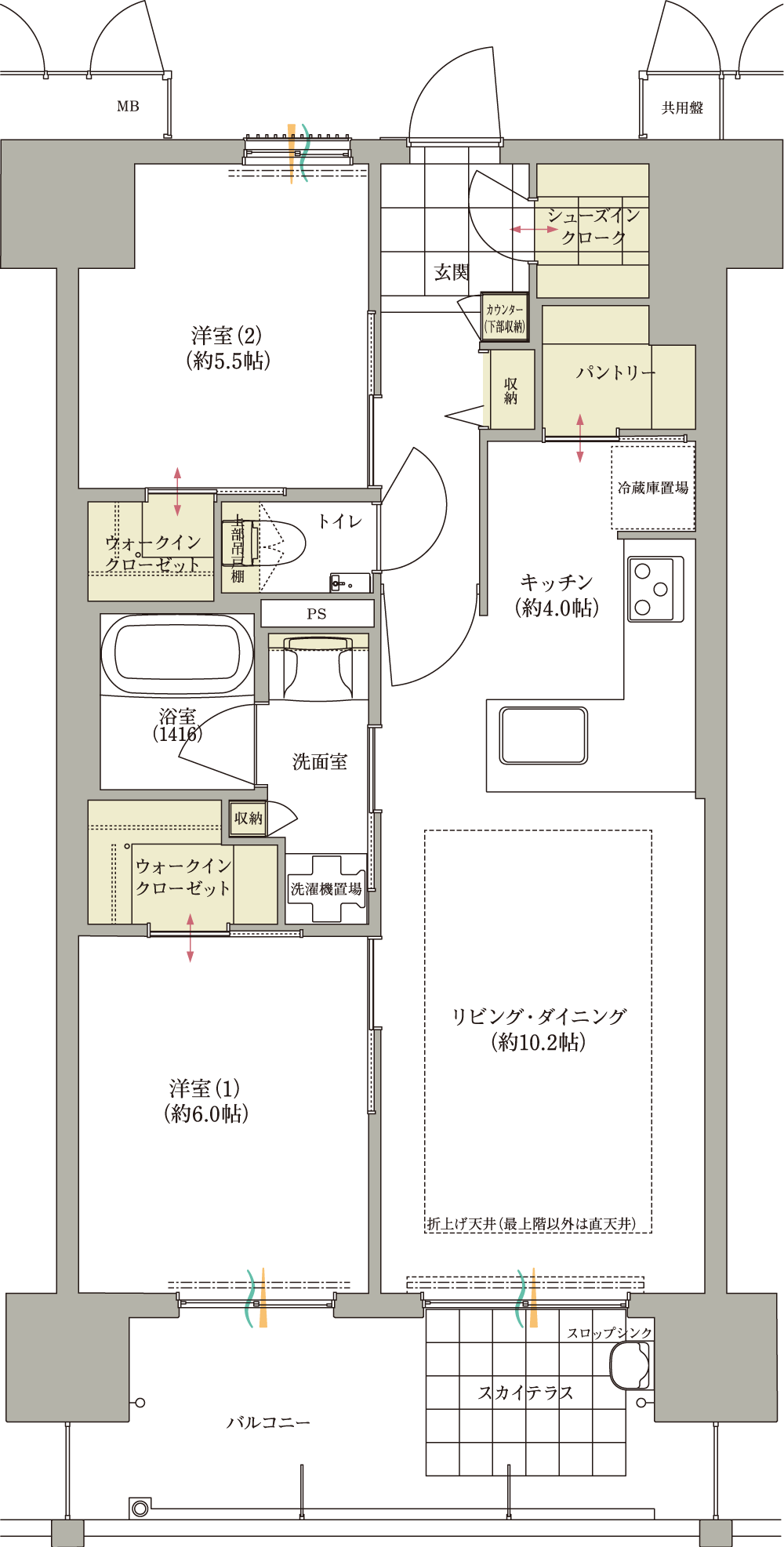 □ バルコニー面積:11.80㎡(約3.56坪)※スカイテラス面積を含む