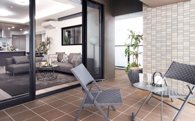 住戸部外部に面した壁には、熱や音を遮断するため、十分なコンクリート厚を求めました。さらに、磁器質タイル(または吹付けタイル)により断熱性も向上。エネルギー効率の高い躯体を実現します。
