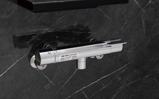 シャワーへの切り替えも、お湯の温度調節もしやすいサーモ水栓。デザイン性も高く、バスルームの快適性をアップさせます。