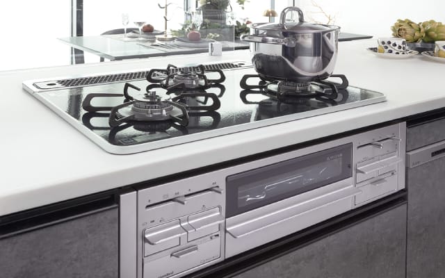 見た目にスッキリ、天板が平らで作業がしやすいフラットトップ。お料理や片付けが捗ります。
