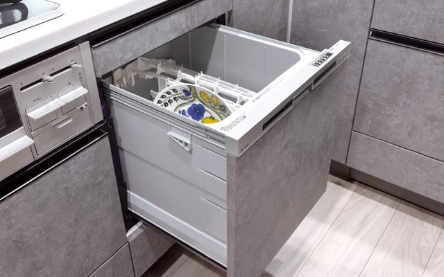 家事の時短と節水に役立つ食器洗い乾燥機。パワフルな水流で頑固な汚れもすっきり洗い流します。