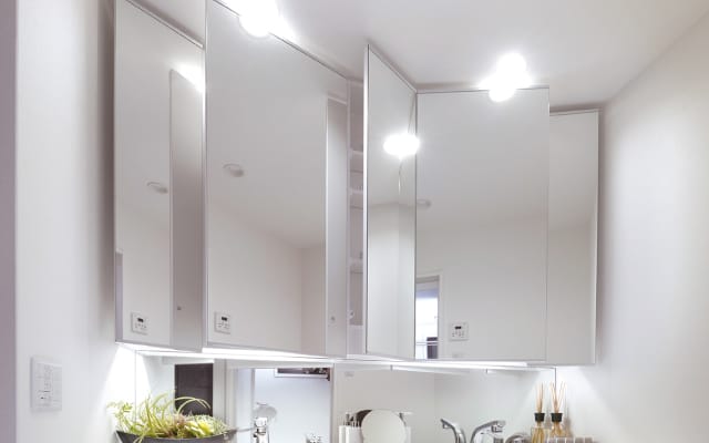 三面鏡の裏側には、小物や化粧品などドレッサーまわりをキチンと整理できる収納スペースをご用意しました。