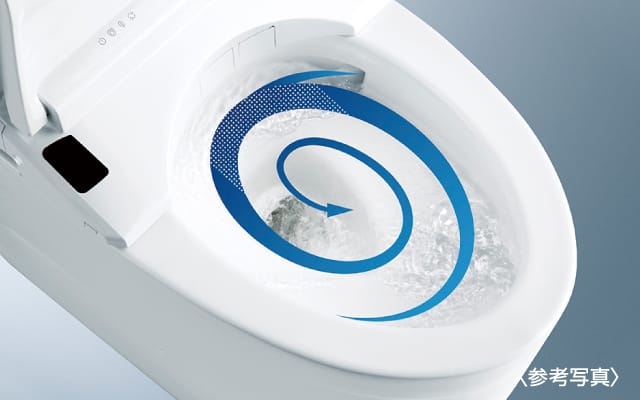 渦を巻くような「トルネード洗浄」で便器をぐるりと洗浄。少ない水でも効率よく流します。