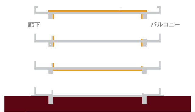 隣戸間の戸境壁には、約180〜250㎜と充分なコンクリート厚を確保。遮音性を高めて隣接する住戸間のプライバシーに配慮しています。