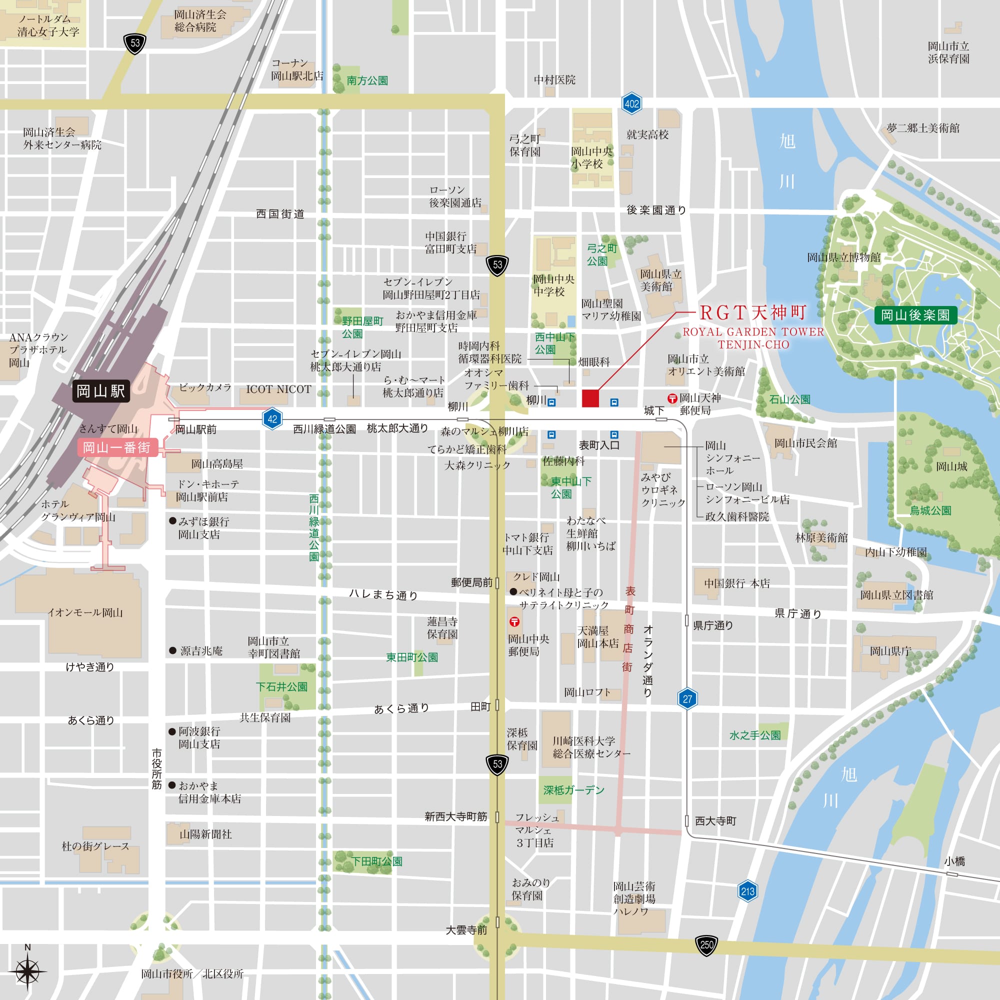 駅歩12分(JR岡山駅)。オーナーに誇りとゆとりをもたらす場所。