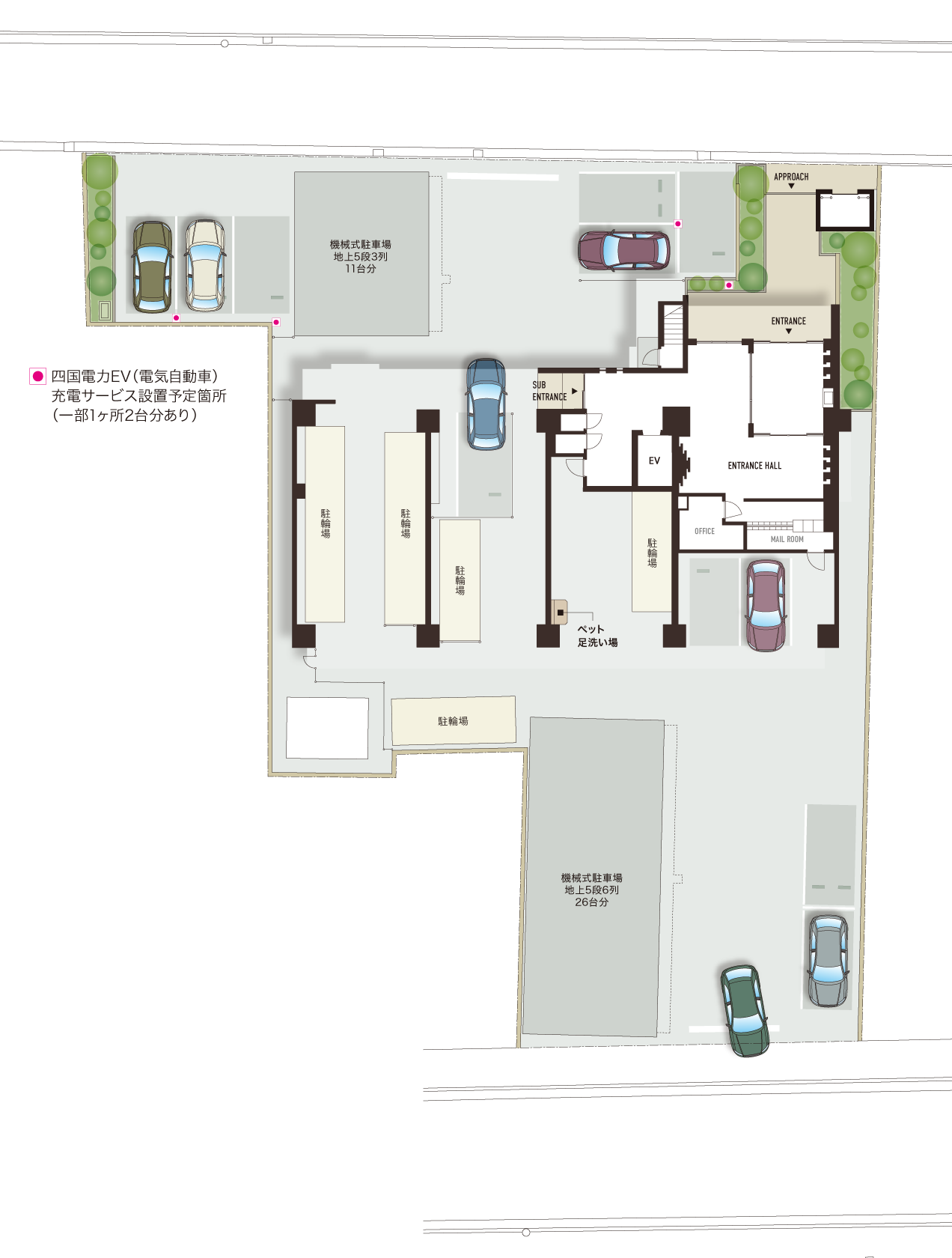 EV充電対応区画設置次世代スタイルのカーライフに対応するため、敷地内に200VのEV充電対応区画をご用意しました。