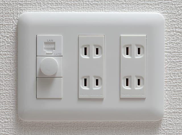 電源だけでなく、電話やWeb用のLANポートが配線可能な便利なコンセントです。