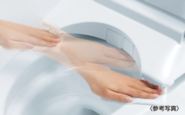 ウォシュレット部分をリフトアップさせることで、便器とのすき間部分の汚れが簡単に拭き取れます。