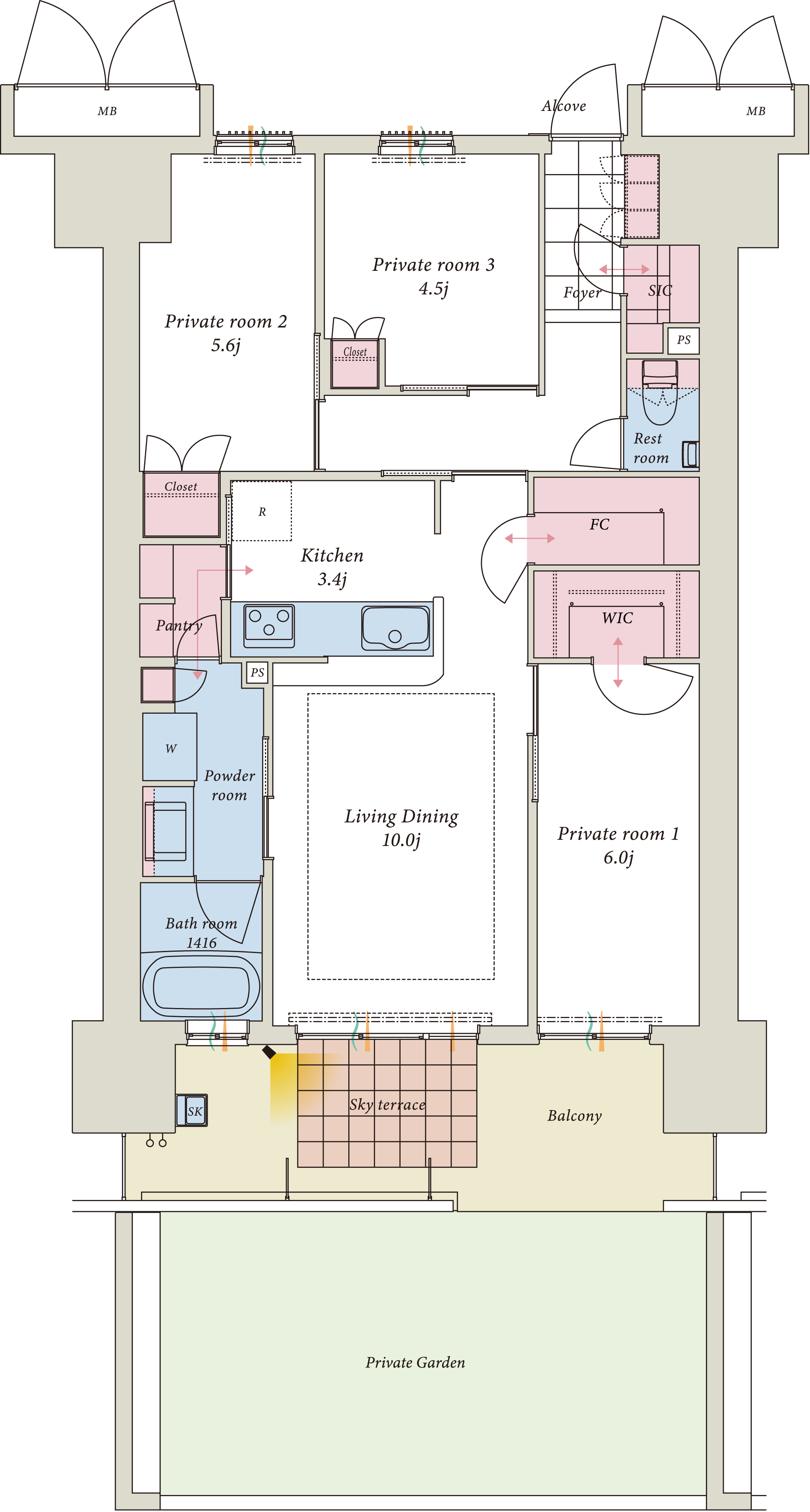 [凡例]WIC:ウォークインクローゼット、SIC:シューズインクローク